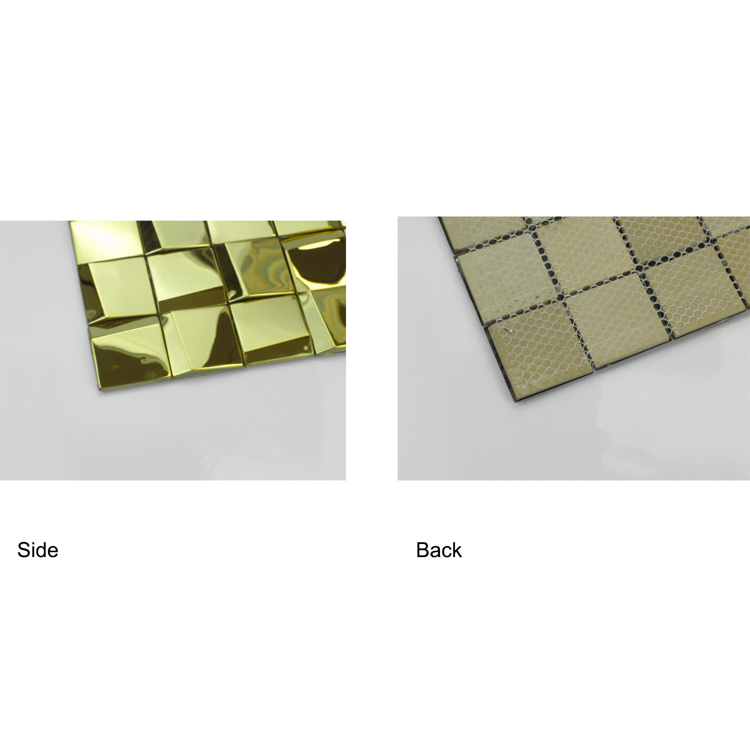 - The golden stainless steel three-dimensional mosaic tiles give tremendous look to your kitchen, bathroom, living space, workstation, meeting rooms, and conference halls.